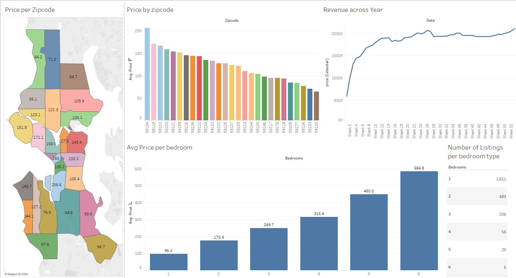 prices by ZIP code, number of listings by bedroom count, seasonal